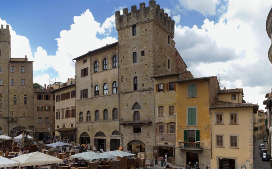 في موقع مركزي فيما يتعلق بالمدينة ، توجد ساحة Piazza Grande ، مسرح Giostra del Saracino (بطولة فارس) ، شاهدًا على أنماط معمارية مختلفة: بجانب برجي العصور الوسطى ، من الممكن مشاهدة Loggiato Vasariano ، أحد أكثر الأماكن إثارة للاهتمام أعمال عصر النهضة المعمارية لأريزو ، وقصر الفناء. علاوة على ذلك ، يتم الاحتفاظ بالصلب من قبل Cimabue داخل كنيسة سان دومينيكو.