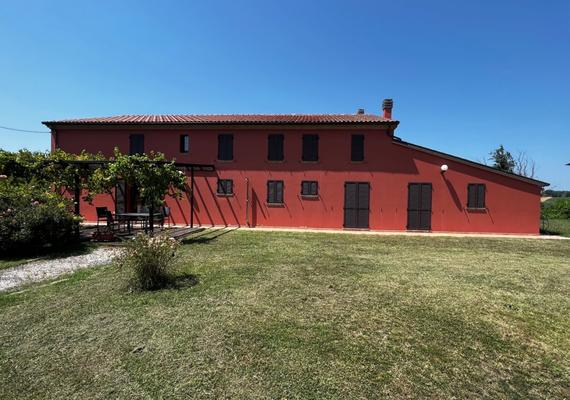 This country house is just a 15-minute drive from the seaside town of Senigallia, known for its velvet beaches. The house has a beautiful garden and swimming pool where you can enjoy a beautiful unobstructed view over the hills. For several years, the Casale has received Italian and foreign tourists who are in love with these beautiful places. It consists of entrance hall, utility room, kitchen, living room, dining room, bathroom with laundry room on the ground floor and a large room of 70 sqm with bathroom, which is used by the owners as an exclusive apartment. On the first floor there are 5 en-suite bedrooms, massage room with sauna. The large outbuilding is currently used as a garage and warehouse. But can also be converted into a guest house