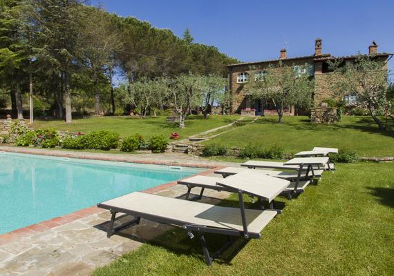 Nahe der Stadt Monte San Savino, in der Toskana, in einer panoramischen und ruhigen Lage, mit einem außergewöhnlichen Blick über die Landschaft des Val di Chiana bis nach Cortona, befindet sich diese zum Verkauf stehende Luxusvilla in einem großen Grundstück von ca. 6 Hektar mit großem Garten, sehr gepflegt in Terrassen, die zu einem schönen Schwimmbad von 14 x 7 m mit Solarium abfallen. Draußen gibt es auch einen herrlichen Anhang, wo ein Grillplatz und ein Steinofen geschaffen wurden. Das Anwesen ist über eine kurze Schotterstraße in gutem Zustand zu erreichen.Das Anwesen, dessen Oberfläche ca. 450 m2 misst, setzt sich wie folgt zusammen: Erdgeschoss: Wohnzimmer, WC, Arbeitszimmer, großes Wohnzimmer mit Kamin, Esszimmer mit Kamin, Küche mit Kamin und direktem Zugang zur herrlichen Panoramaterrasse, ein Schlafzimmer mit Doppelbett und ein Badezimmer mit Badewanne. Erster Stock: Wohnzimmer mit Kamin (auch direkt von außen über eine Steintreppe erreichbar), 3 Doppelzimmer mit 3 Bädern. Eines der Zimmer verfügt über eine wunderschöne Panoramaterrasse mit herrlichem Blick auf den Garten und das Valdichiana.In dieser prestigeträchtigen Residenz finden wir wertvolle Materialien, Oberflächen und Möbel wie Terrakottaböden, Decken mit Holzbalken, perfekt restaurierte Holzarmaturen und große Kamine.Entfernungen: Monte San Savino mit Geschäften aller Art 3 km, Arezzo 26 km, Cortona 40 km, Siena 40 km, Perugia 80 km, Florenz (Flughafen) 90 km, Orvieto 90 km, Rom 200 km km.