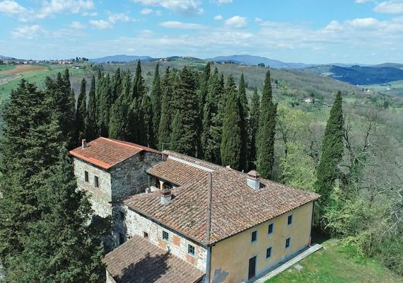 Historisches 19-Hektar-Anwesen auf einem Hügel im Grünen mit Blick auf das landwirtschaftliche Anwesen und das darunter liegende Dorf, 25 km von Florenz und nur wenige Minuten vom Zentrum des Dorfes Rignano entfernt.