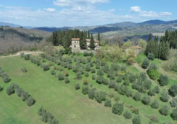 Das Anwesen ist umgeben von 19 Hektar Land mit einer natürlichen Quelle, einem Weinberg für die Produktion von Chianti DOCG, 450 Olivenbäumen, 6 Hektar jahrhundertealten Wäldern, die für ihre Pilze und Trüffel bekannt sind, mit Eichen, Zypressen und Kastanienbäumen sowie Feldern mit zahlreichen Obstbäumen.
