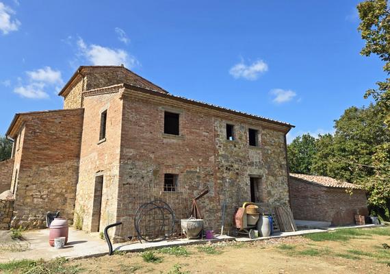Typisches toskanisches Bauernhaus aus Stein mit einer Fläche von 275 m², derzeit im Rohbauzustand renoviert, zum Verkauf in den wunderschönen Hügeln von Lucignano, nur wenige Schritte vom historischen Zentrum entfernt.