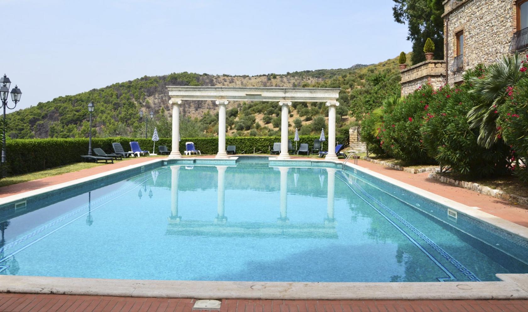 Das Anwesen ist ein altes renoviertes Schloss. Es steht auf den Ruinen der Villa des Catullus, wurde einst den Olivetan-Mönchen anvertraut und wurde ab 1500 die Sommerresidenz der Fürsten des Massimo von Rom. Es wurde kürzlich renoviert, mit altem und kostbarem Marmor bedeckt und luxuriös eingerichtet.Landgut von ca. 68 Hektar teils Olivenhain, teils Wald- und Ackerland. Großer bewaldeter Park und Gärten.Das Hotel verfügt über 37 Superior Doppelzimmer, Suiten und Junior SuitenAuf der Poolebene: Pub für ca. 70/90 PersonenFreistehender Körper von ca. 200 Quadratmetern. Derzeit als Lager genutzt, aber mögliche Umwandlung in Wohnen / Hotel.Gestapelte Ruine von ca. 250 Quadratmetern. (könnte renovierungsbedürftig sein).Außenpool auch beheizt. Reservierter Parkplatz für KundenIn der Nähe befindet sich die berühmte Villa des Kaisers Hadrian, die Villa d'Este mit ihren berühmten Wasserfällen und Brunnen, die anderen historischen Denkmäler von Tivolie und ein Golfplatz.Alle Zimmer sind elegant eingerichtet und mit allem Komfort ausgestattet, einschließlich WhirlpoolsDas Hotel ist mit luxuriösen Speisesälen und Sälen für Hochzeitsbankette, Empfänge, Jubiläen und Veranstaltungen, einem Kongresszentrum und einem Konferenzraum ausgestattet