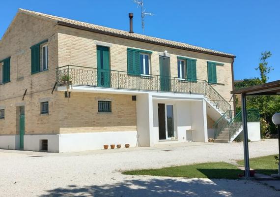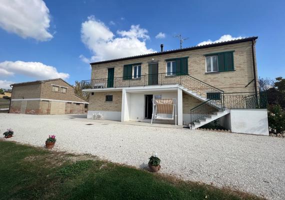 Country house located a few minutes from the center of Recanati, easily and comfortably accessible. Leaving the paved road, you reach the house via a short and well-maintained dirt road that ends directly at the property. The context is typical of the Marche , with its beautiful rolling landscapes . In just over half an hour you can reach the coast and Falconara airport. The land around the house is 3248 m2. fully fenced on which there are also two large outbuildings of 80 and 40 m2 to be restored. On the ground floor, the internal rooms have been left unfinished with the possibility of obtaining three mini-apartments. On the first floor, accessible by an external staircase, the residential apartment has been created that extends over the entire surface and has been renovated through careful and well-finished work, focusing on the large and bright interior spaces. The apartment is distributed as follows: entrance, large open space with living room and kitchen, terrace, two bathrooms and two large bedrooms. The heating is underfloor heating with a pellet boiler. All utilities are available.