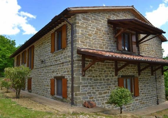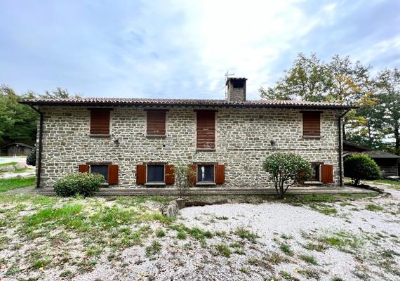 House nestled in the woods 5 km from Apecchio and on the border between Marche and Umbria. The property consists of 3 apartments with 2 bedrooms each, on the ground floor the first apartment with a large central living room, with fireplace and wood oven, kitchen and 2 dining areas, a bathroom and 2 bedrooms.