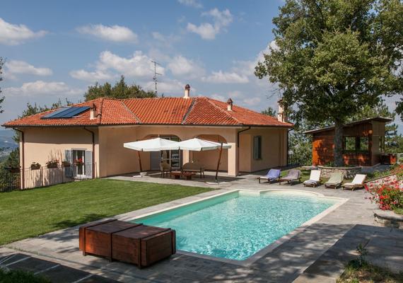 Arezzo. Helle Villa mit Pool zum Verkauf, nur 5 Minuten vom Zentrum der Stadt Arezzo entfernt. Die Villa befindet sich in Panoramalage mit Blick auf Arezzo und ist von einem 6000 m² großen Grundstück umgeben, das als Garten genutzt wird. Ein kleiner Teil eines kleinen Waldstücks befindet sich am Rande des Grundstücks.Das Anwesen besteht aus einer Hauptvilla auf zwei Ebenen, einem Nebengebäude für Gäste aus ökologisch nachhaltigem Holz, einem Nebengebäude in der Nähe des Pools, ebenfalls aus umweltfreundlichem Holz, das als vierseitig geschlossene Veranda mit Thermoglas genutzt wird, einem Dach mit darüberliegenden Photovoltaik-Paneelen für Bei der Erzeugung von 3 kW elektrischer Energie, die heute als Winterlager und Holzlager genutzt wird, befindet sich unweit der Villa das Schwimmbad 6X12 mit römischer Treppe. Durch die kürzliche Renovierung konnte die Villa mit innovativen Technologien mit modernstem Komfort ausgestattet werden. Fußbodenheizung, Biomasseheizwerk mit Palettenspeicher, Photovoltaik und Solaranlage.Die Villa erstreckt sich über zwei Ebenen plus Keller und besteht aus 230 Quadratmetern. Neben 70 Quadratmetern Fitnessraum und Garage. Im Inneren befindet sich im Erdgeschoss ein Essbereich - ein Wohnzimmer mit großen Fenstern, um das herrliche Panorama zu bewundern, eine moderne Küche, ein Schlafzimmer mit Doppelbett, ein Badezimmer, ein Keller, ein Wärmekraftwerk und verschiedene Abstellräume. Erster Stock, Schlafzimmer mit Bad und Kleiderschrank, ein Arbeitszimmer, zwei Schlafzimmer, Bad und großer Flur und eine schöne Terrasse. Im Keller gibt es einen Fitnessraum und eine Garage.Der Garten ist 6000 Quadratmeter groß. Es wird vollautomatisch mit einem artesischen Brunnen auf dem Grundstück bewässert.
