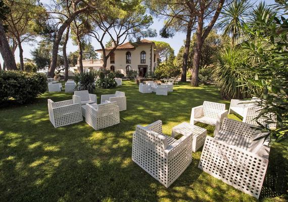 Die Außenbereiche, die die raffinierten Innenräume perfekt ergänzen, sind der ideale Ort für charmante Veranstaltungen und private Feste.
