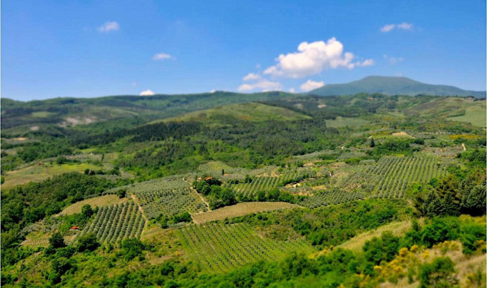 The land is divided as follows: 2.3 ha of vineyard with 1.3 ha of Chianti Colli Senesi and 1 ha of Nobile di Montepulciano, 1.3 ha of olive grove and 2 ha of arable land suitable for planting new vines.