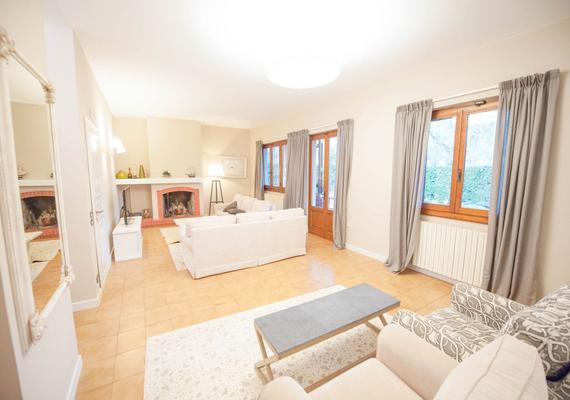 The private garden of about 1,065 sqm frames the villa with breathtaking views of the Apuan Alps, providing an atmosphere of quiet and natural beauty.