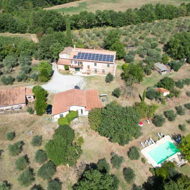 Attraverso un'abile ristrutturazione di queste case rurali, si è sviluppato il complesso immobiliare oggetto della vendita. La struttura è immersa in un parco secolare di vegetazione rigogliosa di un ettaro, dove si trovano anche la piscina, un gazebo, il parcheggio il barbecue e un campo da tennis. Fa parte della struttura anche un ulteriore terreno agricolo di 1.6 ettari.