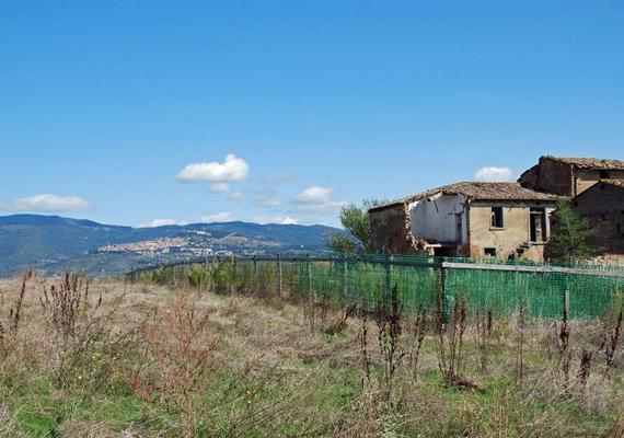 Cortona: casa de campo de ladrillo de 410 m2 más adicionales de 250 m2 con el permiso aprobado para restaurarlos, a pocos km de Cortona y 1,5 ha de terreno.