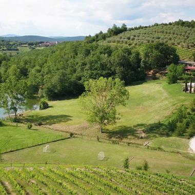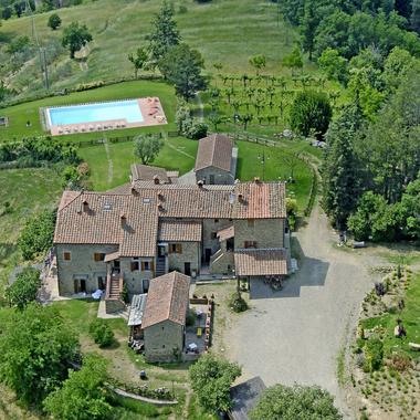 Edifici: L'edificio adibito ad agriturismo dispone di un'ampia piscina ed è suddiviso in sei appartamenti e quattro camere, oltre alla zona giorno. Gli alti soffitti sono a travi, come nella migliore tradizione toscana. La fattoria è circondata da vigneti, che seguono le dolci pendenze del terreno. Nel secondo edificio di 350 mq è locata la cantina ed i locali per la ricezione trasformazione delle uve, locali di stoccaggio, imbottigliamento, spaccio aziendale ed uffici.