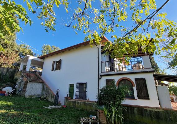 Villa independiente de dos plantas en venta en una posición de colina en Castiglion Fiorentino, con vistas panorámicas de todo el valle.
