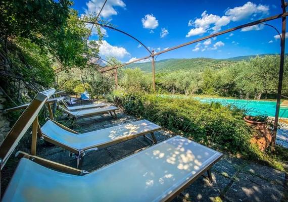 Villa en pierre parfaitement restaurée avec piscine et grand jardin à seulement 3 km de Cortona, une ancienne ville étrusque.C'est une ferme en pierre typiquement toscane, avec des sols en terre cuite caractéristiques et d'anciennes poutres apparentes, surplombant la Valdichiana. La surface de la propriété est de 220 mètres carrés sur trois étages. Le rez-de-chaussée abrite le gîte avec deux chambres, une salle de bains et une cuisine / séjour avec cheminée. La partie principale de la maison est sur deux étages et se compose de cuisine, salle à manger, salle de bain et buanderie au premier étage. Un escalier mène au grand salon d'origine avec cheminée. A cet étage, il y a aussi trois chambres et une salle de bain. Dans le grand jardin de 5000 m2 agrémenté d'oliviers, nous trouvons la belle piscine de 12 × 6 m située à quelques pas de la maison et un coin barbecue avec four à pain d'origine, toujours fonctionnel, un bel endroit pour manger en plein air. .