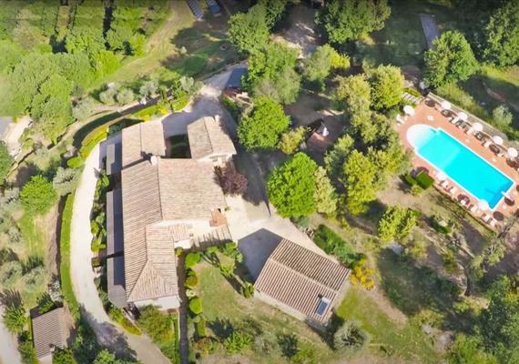 La ferme est située sur les pentes de la "Montagnola Senese", une zone vallonnée couverte de chênes verts, de châtaigniers, d'oliviers et de chênes séculaires. La vue, depuis sa position légèrement surélevée, domine le paysage caractéristique des collines toscanes.