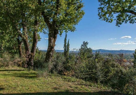La propriété est entourée d'environ 2 ha de terrain privé, en partie boisé, en partie plat avec des terres arables et des oliveraies. Le jardin sur lequel donne la villa jouit d'une vue agréable sur les vallées environnantes.