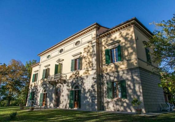 À l'intérieur, la villa compte 10 chambres, ainsi que des salons, des cuisines et des salles de bains, tous dotés de sols en terre cuite toscane. Les intérieurs spacieux et lumineux sont enrichis de beaux plafonds ornés de fresques, de cheminées en pierre et de meubles en bois.