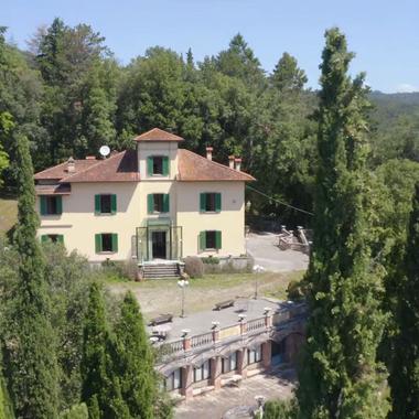 Le château, dont les origines remontent au XIIIe siècle, a traversé des siècles d'histoire, passant entre les mains d'illustres familles nobles. Aujourd'hui, il conserve intacts ses éléments architecturaux les plus fascinants : l'imposante tour d'entrée avec son horloge, la loggia à trois arches avec ses colonnes en terre cuite, les stucs du XVIIe siècle, les portes Renaissance et les fresques de l'ancienne salle de musique.