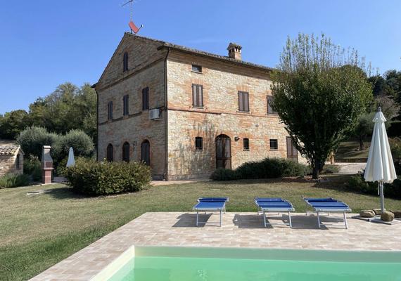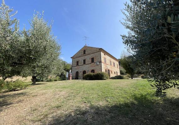 Casa di campagna con dependance a breve distanza dal centro di Servigliano e Monteleone di Fermo, tra la montagna e il mare, con giardino di circa 5.000 mq e piscina. La casa è facilmente raggiungibile da una strada asfaltata, dove transitano pochissime auto ogni giorno, è una zona tranquilla e silenziosa. La casa si trova in una posizione riservata e appartata ma non isolata con un bellissimo panorama aperto sull'incontaminata campagna circostante. Dalla strada si accede attraverso il cancello al giardino, completamente recintato e piantumato con numerosi ulivi secolari. E' presente anche un pozzo per l'irrigazione del giardino. La casa, recentemente ristrutturata, si sviluppa sui piani primo e mansarda. Al primo piano (167 mq) un ampio soggiorno con camino, zona pranzo e cucina a vista con accesso ad un ampio terrazzo panoramico (38 mq), allo stesso piano un disimpegno e bagno con doccia, ripostiglio, due ampie camere, una camera matrimoniale con bagno privato (uno con doccia, uno con vasca e doccia); al piano mansardato (147 mq) un comodo disimpegno conduce a due camere matrimoniali, anch'esse dotate di bagno privato con doccia. Al piano terra (210 mq) si trovano un ampio garage, un comodo bagno, la lavanderia e stireria, una stanza con una grande vasca idromassaggio, una sala giochi e locali ripostiglio. La casa dispone di riscaldamento a gas GPL, energia elettrica, rete WiFi e aria condizionata. Non lontano dalla casa è stato ristrutturato l'annesso (grezzo), attualmente inutilizzato ma che, data la sua superficie (150 mq), potrebbe facilmente ospitare una seconda abitazione più piccola.