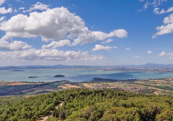 Questa straordinaria proprietà, situata in una posizione panoramica unica al confine tra Umbria e Toscana, regala una vista incantevole sul lago Trasimeno e sulle dolci colline toscane, un panorama che lascia senza fiato.