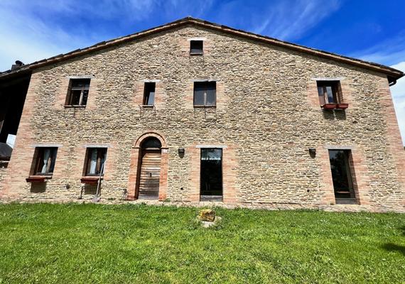 Renovated Country House retaining, where possible, the original materials, it is partly plastered and partly of natural stone and is in a good condition. The roof has wooden beams and terracotta tiles. The last restoration dates from about 15 years ago . The house is located in the hilly landscape of Montefeltro/Urbino and has a breathtaking view of the surrounding hills that stretch to the Republic of San Marino and is about 40 minutes drive from the coast.