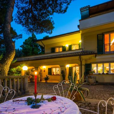 Первый этаж. Салон, украшенный фресками с классическими мотивами, открывает первый этаж виллы, рядом с ним находятся два салона поменьше, гостиная, столовая, светлая кухня с камином, столовая с кладовой, ванная комната и великолепная частная часовня. Здесь же на первом этаже находится отдельное помещение, состоящее из столовой, кухни, спальни и ванной комнаты. Вдоль красивой каменной лестницы, ведущей на второй этаж, где окружающий декор согласуется с первым этажом, находится великолепный салон со стенами, полностью расписанными фресками с батальными сценами. Вокруг салона расположены пять спален, обслуживаемые тремя ванными комнатами, два других помещения, здесь же, занимает кабинет, но которые могут быть использованы как спальни. На этом этаже, кроме того, находятся две террасы и балкон, позволяющие видеть подъездную аллею и парк. На третьем этаже расположены семь помещений, в которых расположены кабинеты, спальни и три ванные комнаты. Вторая лестница ведет на мансардный этаж, состоящий из большого центрального помещения и других восьми комнат, в настоящее время используемых в качестве чердака, но благодаря высоте потолков могут использоваться для любых целей. И наконец, четвертый этаж, который на самом деле является прекрасной панорамной террасой. Собственники привели к завершению большой проект по реставрации, с тонкостью, благодаря страсти и тщательному вниманию к деталям. Вилла до сих пор сохраняет все подлинные материалы и вновь поражает своими фресками и старинными терракотовыми полами. Некоторые из фресок были созданы мастером Адемолло, значимым художником 18 века, которому приписываются также картины, находящиеся в одном из залов во Дворце Дожей в Лукке и в Палаццо Реале в Пизе. Внутри прекрасного парка с вековыми деревьями, площадью около 10.000 кв.м. находится большой оригинальный фонтан из камня. Почти вся мебель включена в стоимость продажи. Расстояния: Кашана Терме - 6 км, Ливорно - 35 км, Флоренция - 77 км, Кастильончелло - 39 км, Вольтерра - 41 км, Лукка - 66 км, Виареджио - 67 км. Побережье Тирренского моря в 31 км, автострада А 12 в 20 км, в то время как Пиза и ее аэропорт находятся примерно в 33 км.
