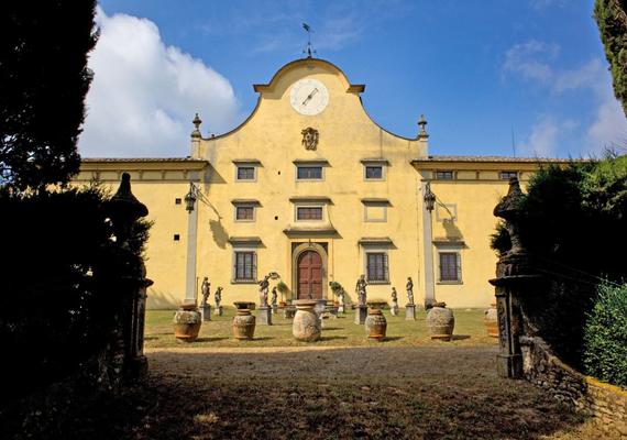 Среди фантастических деревенских пейзажей Тосканы, к югу от Флоренции, возвышается эта грандиозная вилла, восходящая к XVI веку. Длинная аллея с кипарисами ведет к входу на территорию виллы к ее великолепному фасаду, украшенному большими механическими, до сих пор действующими, часами. Атмосфера виллы исполнена чрезвычайной элегантностью: интерьер украшен фресками, нарядные двери гостиных и столовых комнат привлекают внимание. Комнаты освещаются роскошными старинными светильниками. Потолки украшены лепниной и живописью. Оригинальные покрытие полов, двери и каменные обрамления.