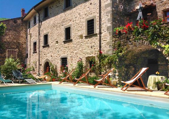 Масса Каррара. Старинное здание, расположенное в центре очаровательного средневекового городка Личиана Нарди, основанного в XIII веке, где ранее проходил известный Соляной Путь. Ранее дом принадлежал знатному роду Маласпина, затем Эстенси, о чем свидетельствует орел на гербе входной двери. Вход в дом с массивной балкой представляет особый исторический интерес. Здесь мы можем видеть знаки мальтийского креста и Креста Святого Франциска, в дополнение к классическому изображению рыбы, представляющей христианскую икону. Сводчатые полотки, терракотовые полы, каменные порталы, и особенно массивная лестница из благородного песчаника являются характерными признаками древнего прошлого. Здание располагает 800 кв.м. частного двора, где располагается недавно построенный бассейн (т. 4 х 8). Двор также имеет подъездной путь. Площадь здания составляет около 700 кв.м. брутто, из которых 600 кв.м. отремонтированы. Разделено на 6 квартир различных размеров, офис 20 кв.м., 25 кв.м. склада и около 70 квадратных метров дополнительной площади под ремонт, где есть возможность сделать еще одну квартиру или общее помещение. Каждая квартира является совершенно независимой, с кухней и автономным отоплением. В каждом номере есть собственная ванная комната. Различие стилей характеризует каждую квартиру: деревенский - на первом этаже, элегатный - двух квартир на втором и третьем этажах и контраст современного в старинном чердаке и пристройке. Здание имеет лицензию отеля, успешно работающего и приносящего стабильный доход.