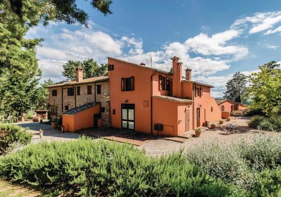 Great holiday farm for sale in Umbria, nearby Castiglion del Lago (Trasimeno Lake). The property is located in nice hilly position in one of the best places in this region of the middle Italy. The plots that surround the houses commands gorgeous views and cover approx. 30.000 sqm, comprising an olive grove and some arable crops. There is the possibility, though, to purchase more plots.