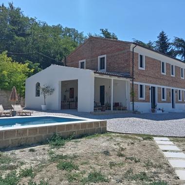 Historic Villa, located in a large park with swimming pool, not far from Pergola. The Villa boasts many traditional architectural features including huge stone fireplaces, stone arched doorways with large wooden double doors, vaulted ceilings, beautiful wooden carved ceilings and beautiful terracotta floors. The 772 m2 of space includes elegant lounges and sitting rooms, eight bedrooms and three kitchens, one on the ground floor and two on the first floor. Lanoro is set in a well-maintained lawned garden with flower beds, mature trees, a terrace, a swimming pool and a beautiful detached private chapel with a shell pink vaulted ceiling and traditional wooden church pews. There are some outbuildings that are currently used as a garden and agricultural storage, which can also be given a different purpose after restoration. The Villa offers extensive views of the beautiful hills of the Marche with its medieval villages such as Urbino, Pergola, Cagli and Fabriano. The seaside resorts of Senigallia, Fano, Sirolo are 40 or 50 minutes away.