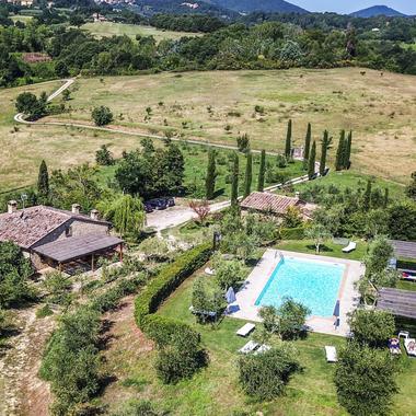 Distances: Perugia 28 km, Perugia airport 35 km, Assisi 45 km, Siena 90 km, Florence 120 km, Rome 180 km, Montepulciano 40 km, Cortona 20 km and Gubbio 65 km.