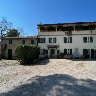 从外部看,农舍内有一个室外用餐门廊(可容纳 10 人),配有烧烤架和烧木柴的烤箱,还有一个带罗马式台阶的无边泳池(7x14 米,深 2.30 x 2.30 米),可以欣赏到周围乡村的壮丽景色。