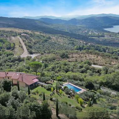 在阿雷佐省的托斯卡纳乡村出售的现代豪华别墅,带有附属建筑和带橄榄树的大土地。 该别墅配备了所有最新一代的舒适设施,并采用创新技术建造,可确保出色的能源效率。该别墅共三层,共740座,设有6间卧室和9间浴室。地下室有两间卧室,内有套间浴室,客厅-饭厅,厨房,柠檬屋,洗衣房,客用浴室,健身房,大型车库和技术室。一楼有三个带用餐区的大客厅,带套间浴室的卧室,两个客用浴室,门廊和两个露台。最后,一楼设有三间带连接浴室的卧室,其中两间设有露台。60平方米的附属建筑位于一层,由带厨房的客厅,走廊,卧室,浴室和小型技术室组成。饰面已通过最小的细节进行了护理,室内地板全部为镶木地板,除了石灰华的厨房和浴室以及石灰华覆盖的浴室外。 暖气在地板下。太阳能电池板系统可以加热卫生水。最先进的空调系统。由于上述特性,建筑物可以归为A4级能源。光伏系统的额定功率为10.8 kW,而产生热水的太阳能电池板则为8.0 kW。在占地5公顷的土地上,有一个4000平方米的花园,花园里种着美丽的观赏植物,配备有灌溉系统,照明设备和12×6 m的无边泳池,在石灰华中铺有大型日光浴室。剩余的土地被一个大橄榄树覆盖,该橄榄树由330棵老树和2700棵新近种植的植物组成,所有植物都配有灌溉系统。年产量约为3,000升特级初榨橄榄油。别墅距离最近的村庄(可提供所有服务)有900 m,也很容易到达托斯卡纳和翁布里亚的许多旅游中心。