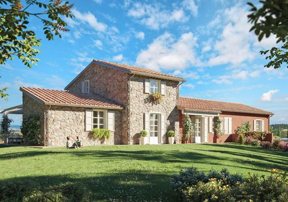 该项目计划拆除现有建筑,新建一座托斯卡纳经典农舍,面积约 370 平方米,采用名贵材料和现代系统,能效等级为 A 级。
