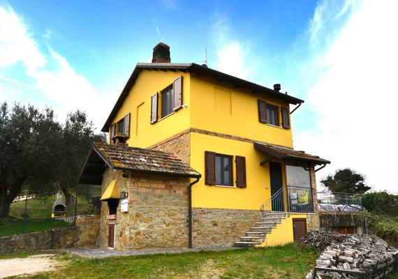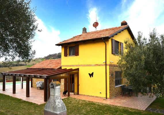 Country house located on the hills of the Marche near the municipality of San Lorenzo in Campo, in the province of Pesaro and Urbino. The property consists of two levels, plus an underground garage. On the ground floor: a spacious living room equipped with fireplace and kitchen, with direct access to a covered terrace that connects to the swimming pool. On this floor there is also a spacious double bedroom and a bathroom. On the first floor: two bedrooms and a second bathroom. The structure is in excellent condition, equipped with LPG heating and a central pellet stove. The house has an area of approximately 130 m2. In the basement there is a spacious garage of approximately 40 m2. The surrounding grounds extend over approximately 1,200 m2. and features a beautiful panoramic swimming pool with a terrace. The well-maintained garden has a charming olive grove and fruit trees. The property is gated and has a panoramic position and is in excellent condition.